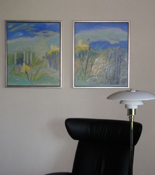 Jeg maler også meget gerne på bestilling. Her kan jeg tage højde for dine specifikke ideer og ønsker til et billede eller en vægudsmykning. Det kan være både i forhold til motiv, udtryk og farvevalg men også til billedets størrelse, så det passer harmonisk ind i det rum, det skal hænge. Hvis du har større rum med flere vægge, der skal udsmýkkes, laver jeg gerne en serie af malerier, som giver en samlende og sammenhængende oplevelse af rummets vægudsmykning og udtryk.